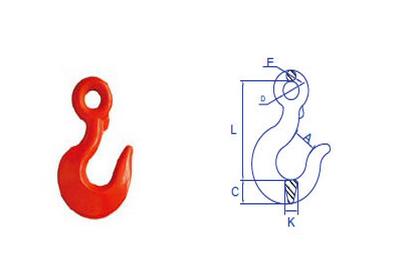 鉤體采用優(yōu)質(zhì)合金結(jié)構(gòu)鋼模鍛而成。最小破斷載荷為額定工作載荷的4倍。鍛件經(jīng)熱處理。